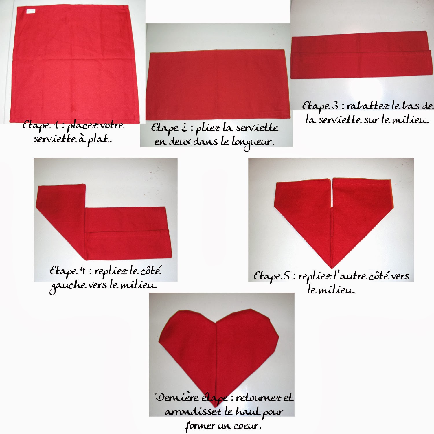 Que l’on dîne en tête-à-tête avec un(e) ami(e) célibataire ou avec sa moitié, difficile de se passer de quelques basiques le soir de la Saint . Origami : Pliage de serviette en papier en forme de coeur. BlogIdées déco mariageIdées par catégoriesPliage de servietteLe pliage de. Pour la Saint Valentin, déclarez votre flamme à l’élu de votre coeur, en apprenant décorant votre table de jolies serviettes pliées en forme de . Découvrez comment réaliser un joli pliage de serviette en forme de.